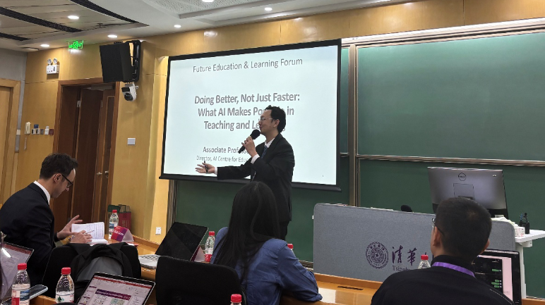 From 17 to 19 April 2026, Prof Ben Leong, Director of the AI Centre for Educational Technologies (AICET), and Dr Liu Liu, Research Fellow of AICET, visited Tsinghua University in Beijing for a series of activities on AI-empowered education. The visit included an invited presentation and roundtable panel at the international conference “Future Education and Learning in the Age of AI” (人工智能时代的未来教育与学习), co-organised by the Tsinghua School of Education and The Education University of Hong Kong (EdUHK); a study visit to XuetangX (学堂在线); a seminar on programming language courses hosted by the Tsinghua Office of Academic Affairs and the Center for Faculty Development; and in-depth research discussions with the Tsinghua School of Education, AICET’s MOU partner.