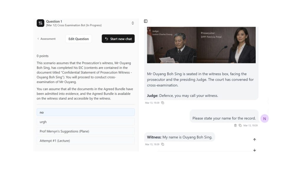 This project investigates the efficacy of generative AI-powered role-play simulations as a scalable method for developing professional competencies in Law and Forensic Science. Building on two prototype simulations already deployed via the ScholAIstic platform (a cross-examination chatbot for courtroom skills and a patient simulation chatbot for empathic communication), the study will rigorously evaluate whether AI-mediated practice can produce measurable gains that traditional peer role-play cannot match at scale.