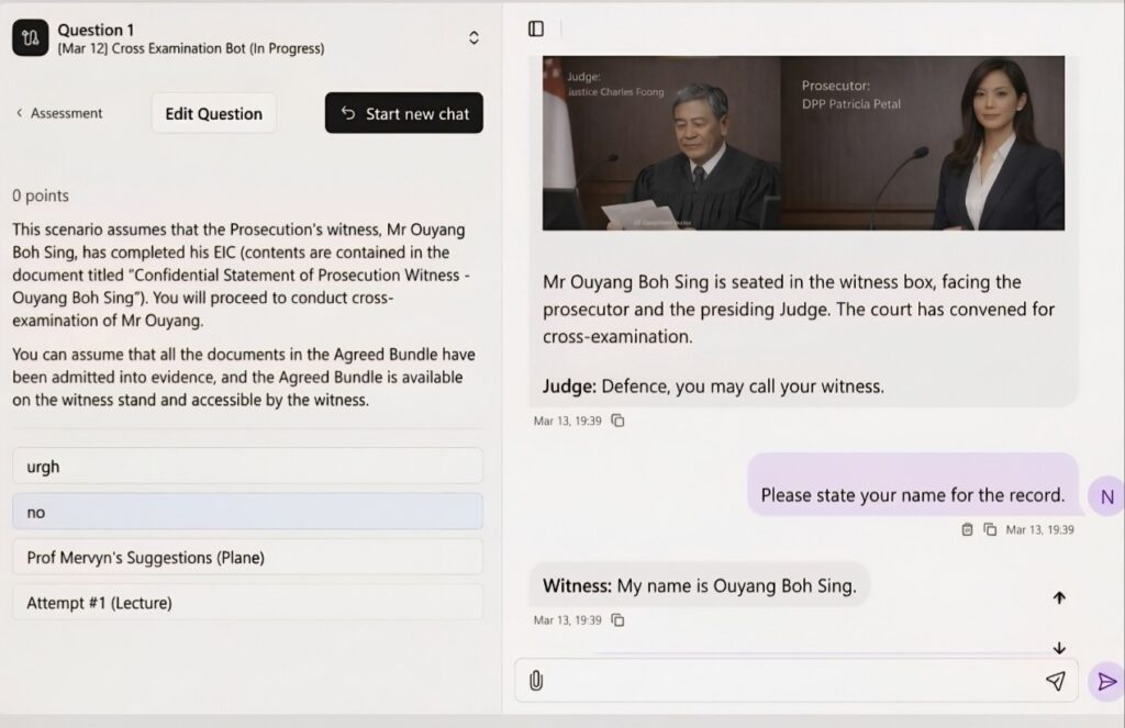 This project investigates the efficacy of generative AI-powered role-play simulations as a scalable method for developing professional competencies in Law and Forensic Science.