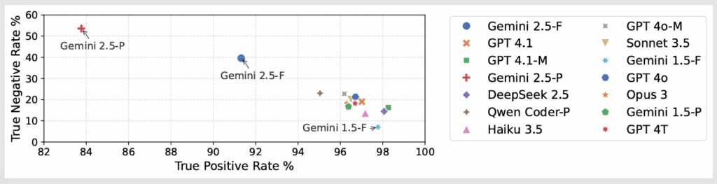 Agreeableness bias in LLM validators showing high True Positive Rate but low True Negative Rate